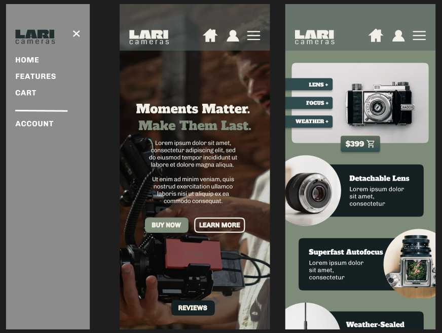 I designed a mobile-first eCommerce flow for Lari Cameras, a premium camera retailer.